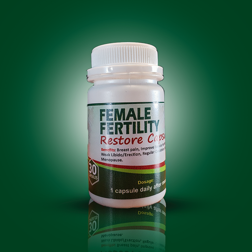 Female fertility restore capsule help you to step into your fertility journey with confidence as It Puts An End To Ovulation Disorders, Boosts Egg Quality, Balances Hormones And Boosts Fertility it has been clearly formulated to increase the chance of conception and develop High Quality Egg.